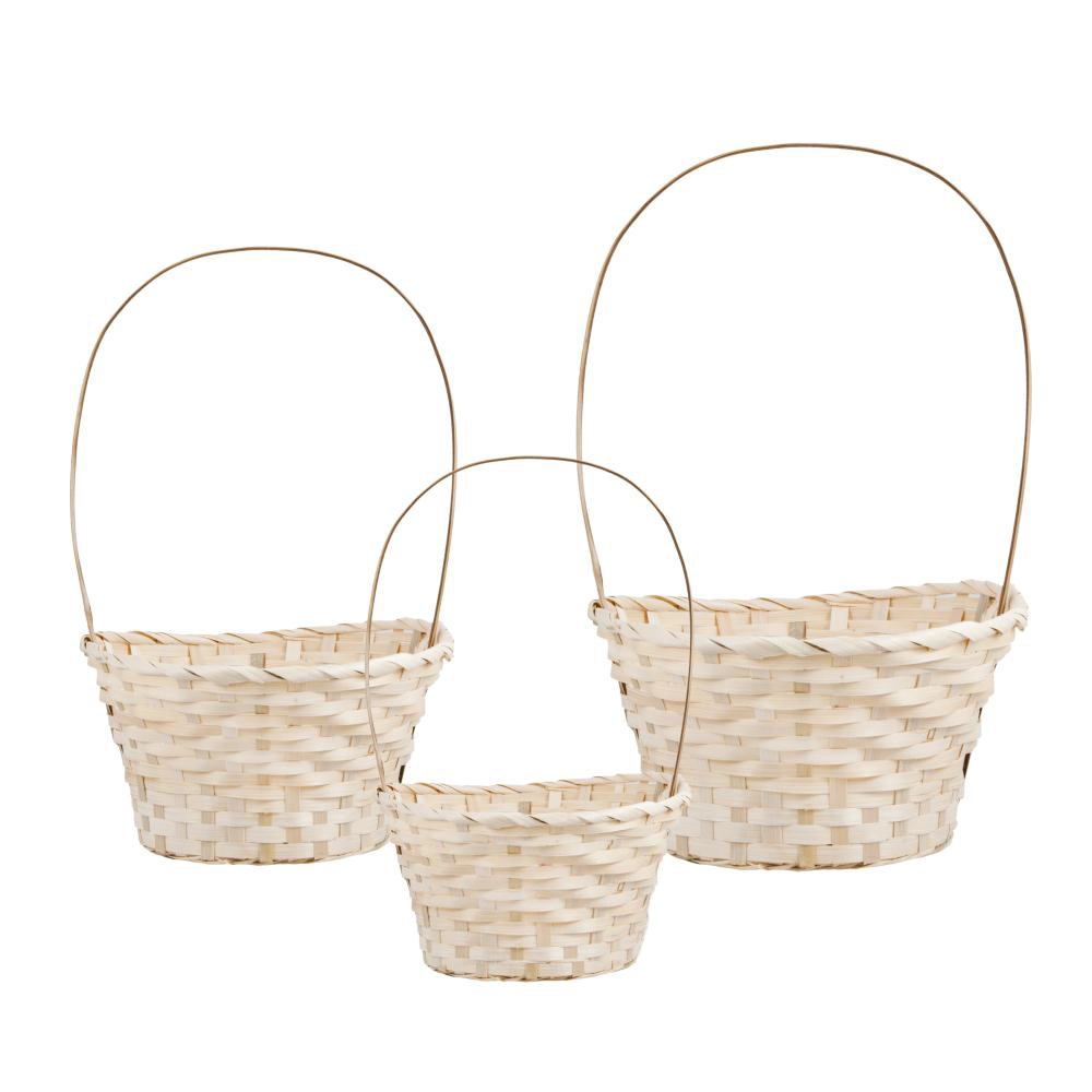 Корзина плетеная (бамбук), D26xH13/38 см - D20xH11/35 см, набор (3 шт) Натуральный