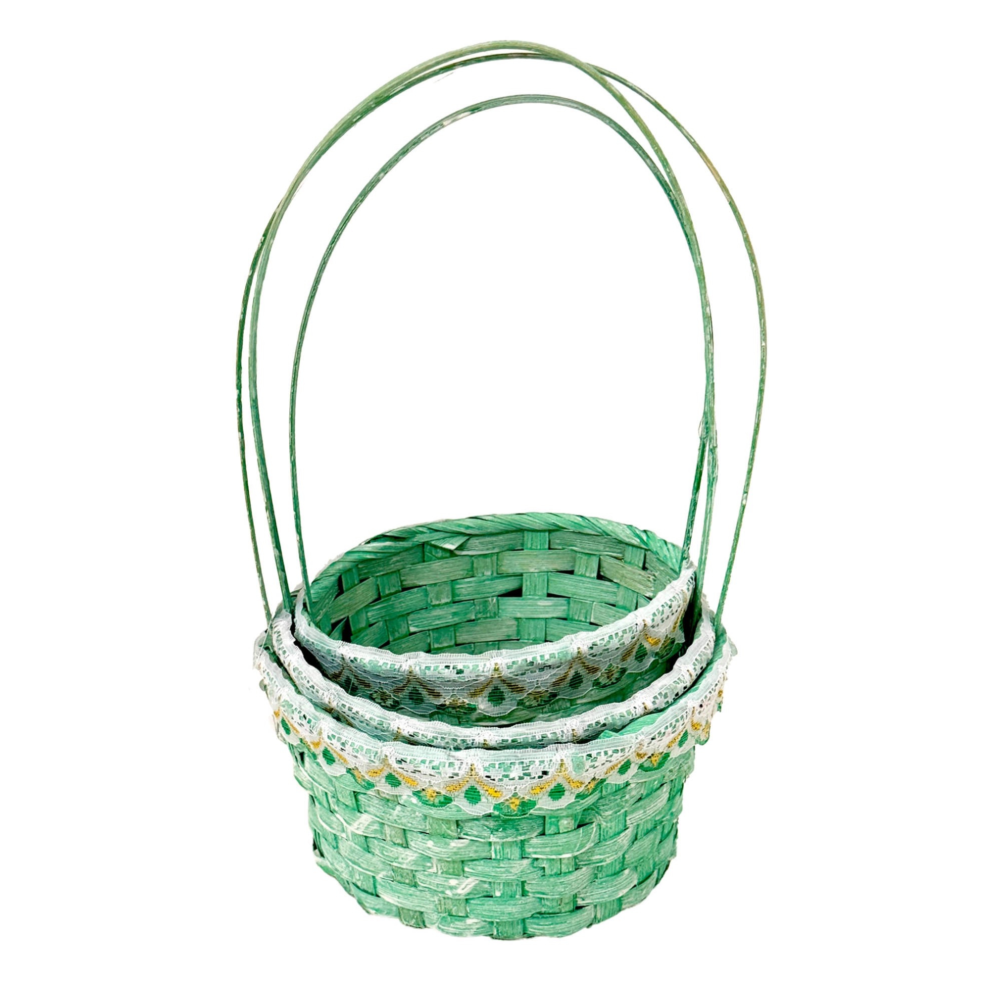 Корзина плетеная "Кант" (бамбук), D17xH9/30 см - D21xH10/34 см, набор (3 шт) Зеленый