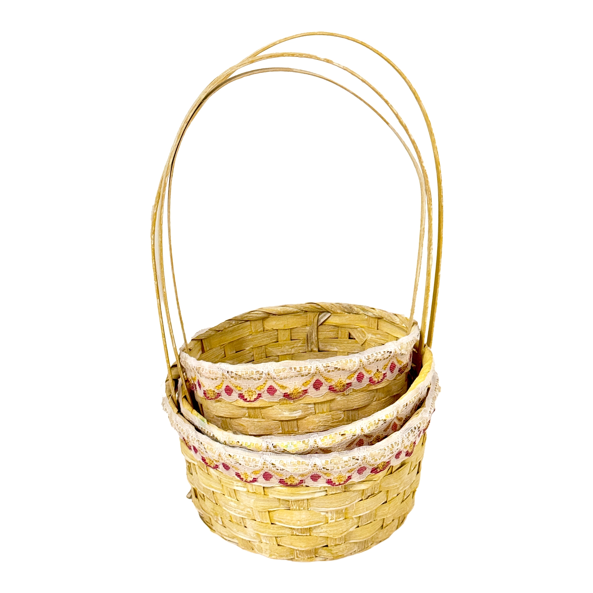 Корзина плетеная "Кант" (бамбук), D17xH9/30 см - D21xH10/34 см, набор (3 шт) Желтый