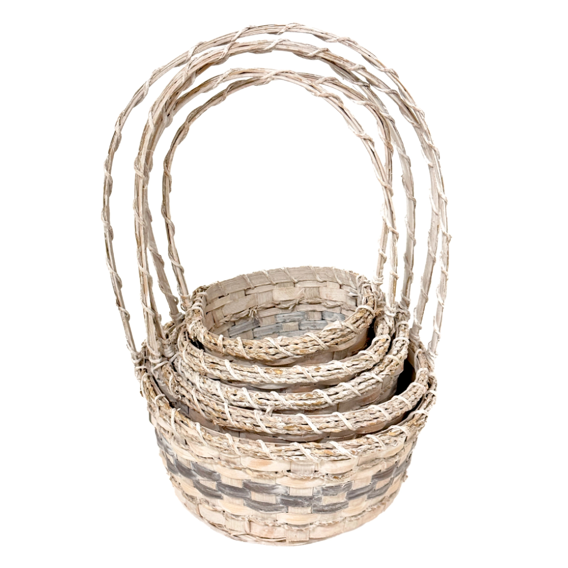 Корзина плетеная "Кант" (бамбук), D17xH9/30 см - D26xH11/37 см, набор (5 шт) Белый