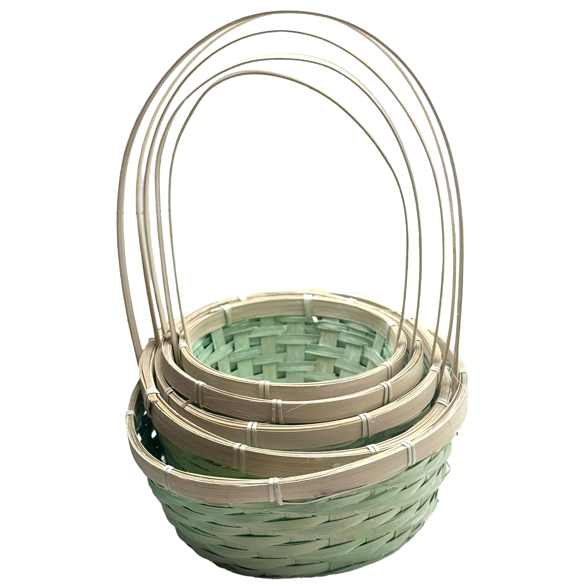 Корзина плетеная "Кант" (бамбук), D17xH9/30 см - D26xH11/37 см, набор (5 шт) Зеленый