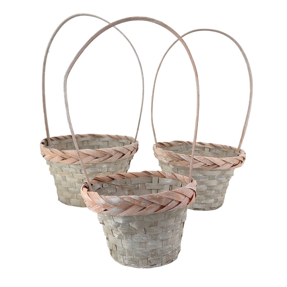 Корзина плетеная "Кант" (бамбук), D21xH12/35 см - D16xH10/31 см, набор (3 шт) Розовый
