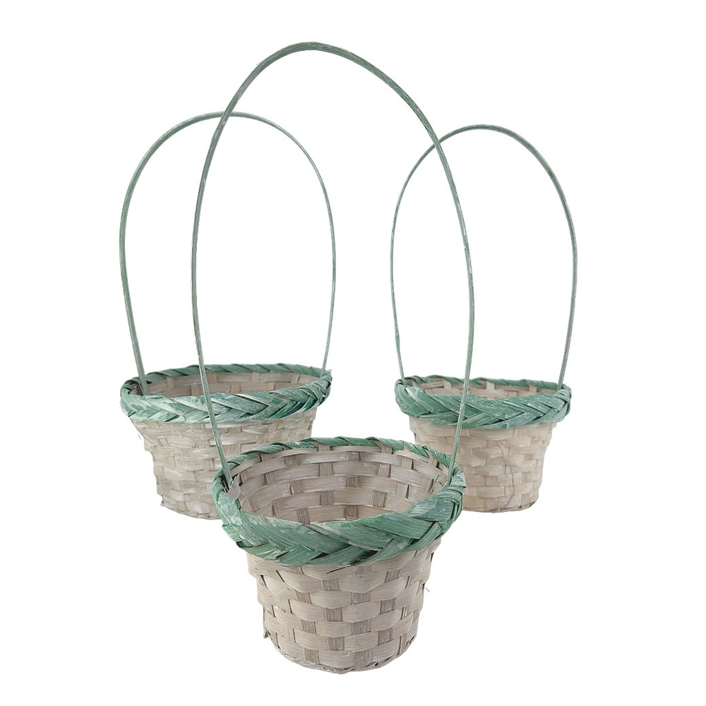 Корзина плетеная "Кант" (бамбук), D21xH12/35 см - D16xH10/31 см, набор (3 шт) Зеленый