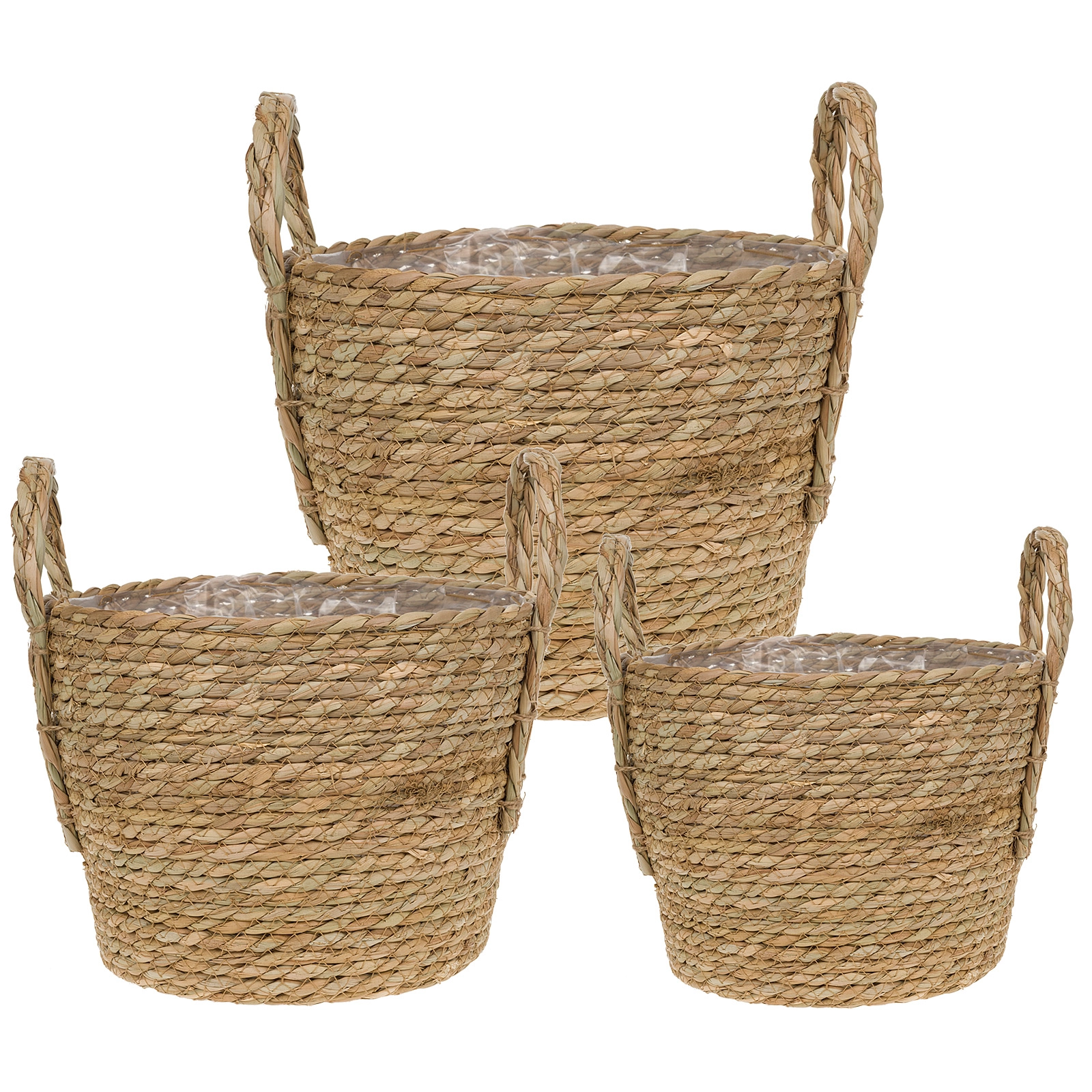 Корзина плетеная (трава), D31xH25,5 см - D22xH15,5 см, набор (3 шт) Натуральный