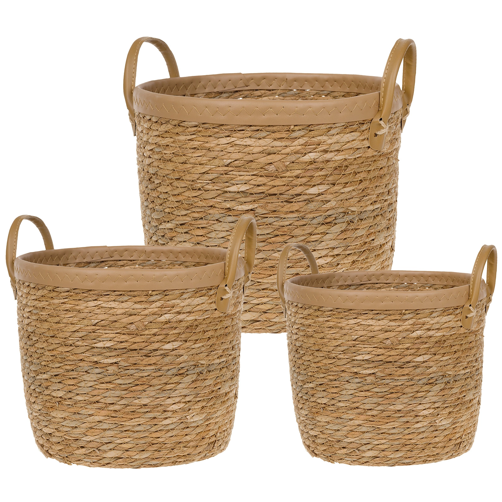 Корзина плетеная (трава, ткань), D31xH29 см - D25xH21 см, набор (3 шт) Натуральный
