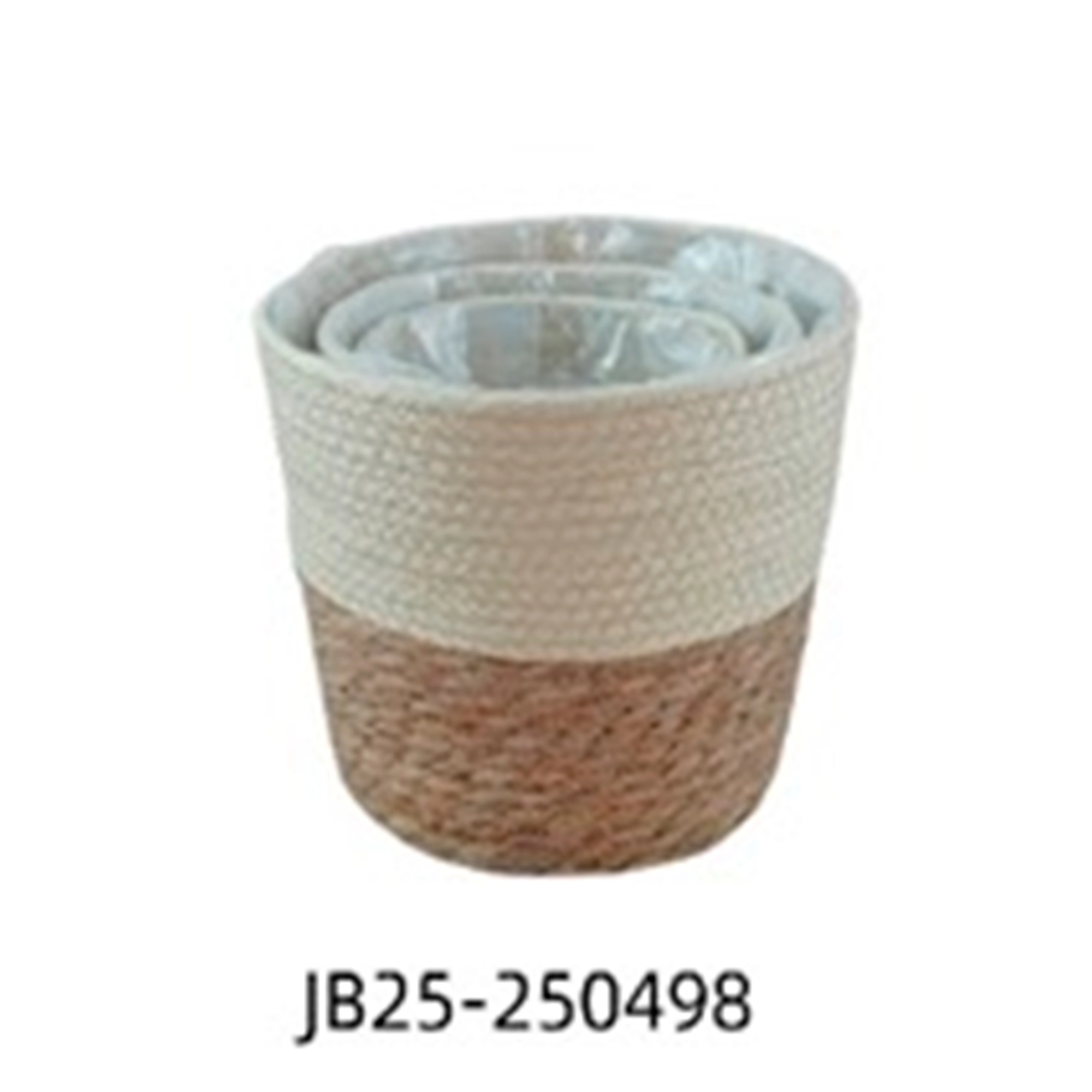 Корзина плетеная (водоросли, ткань), D24xH18 см - D15xH12 см, набор (3 шт) Натуральный