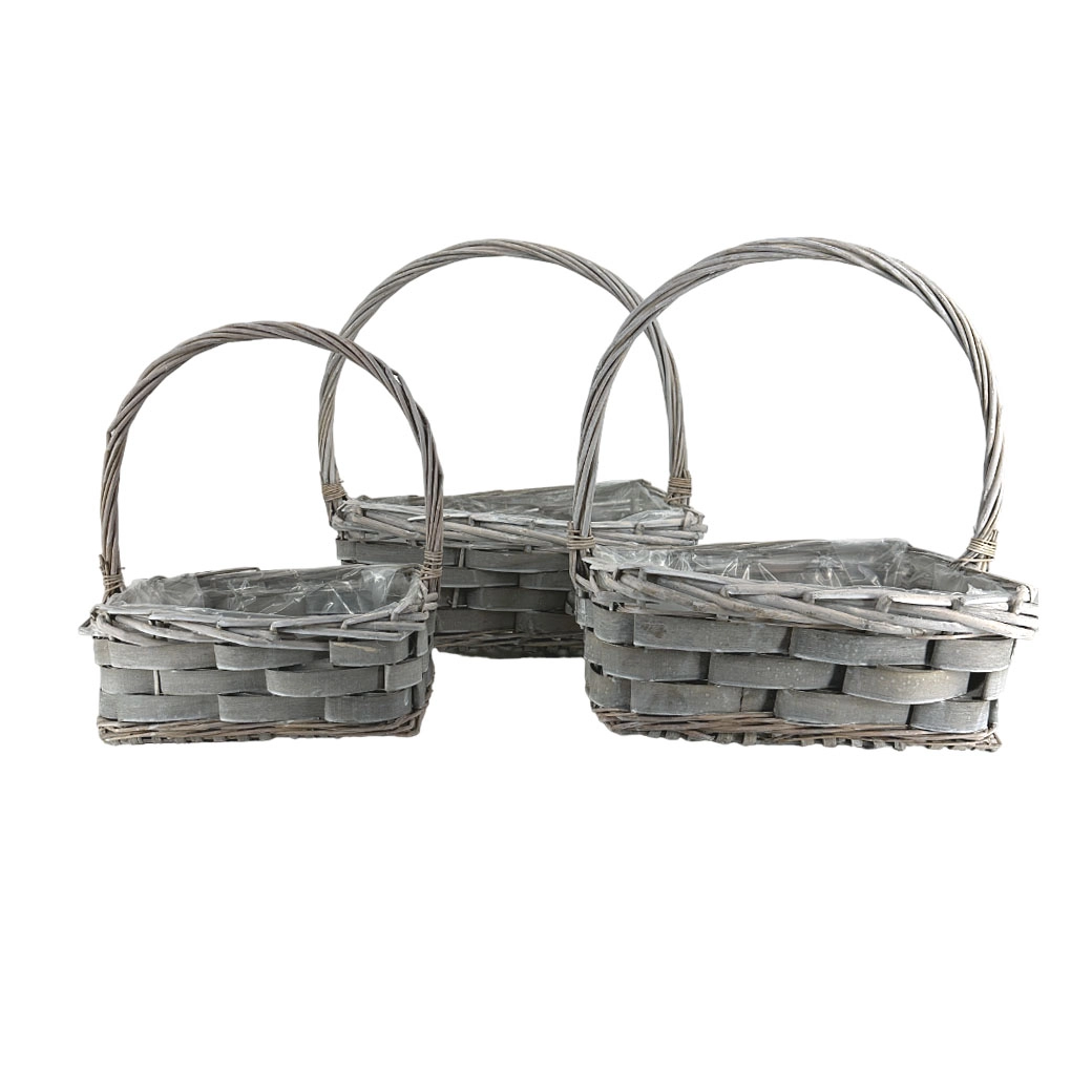 Корзина плетеная (ива), 36x25xH14/40 см - 25x16xH10/31 см, набор (3 шт) Серый