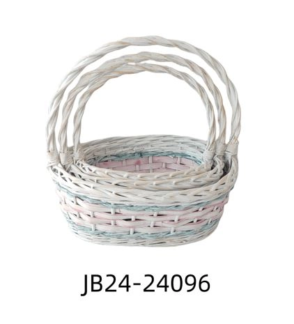 Корзина плетеная (ива), 37x30xH14/38 см - 27x19xH11/29 см, набор (3 шт) Белый-розовый