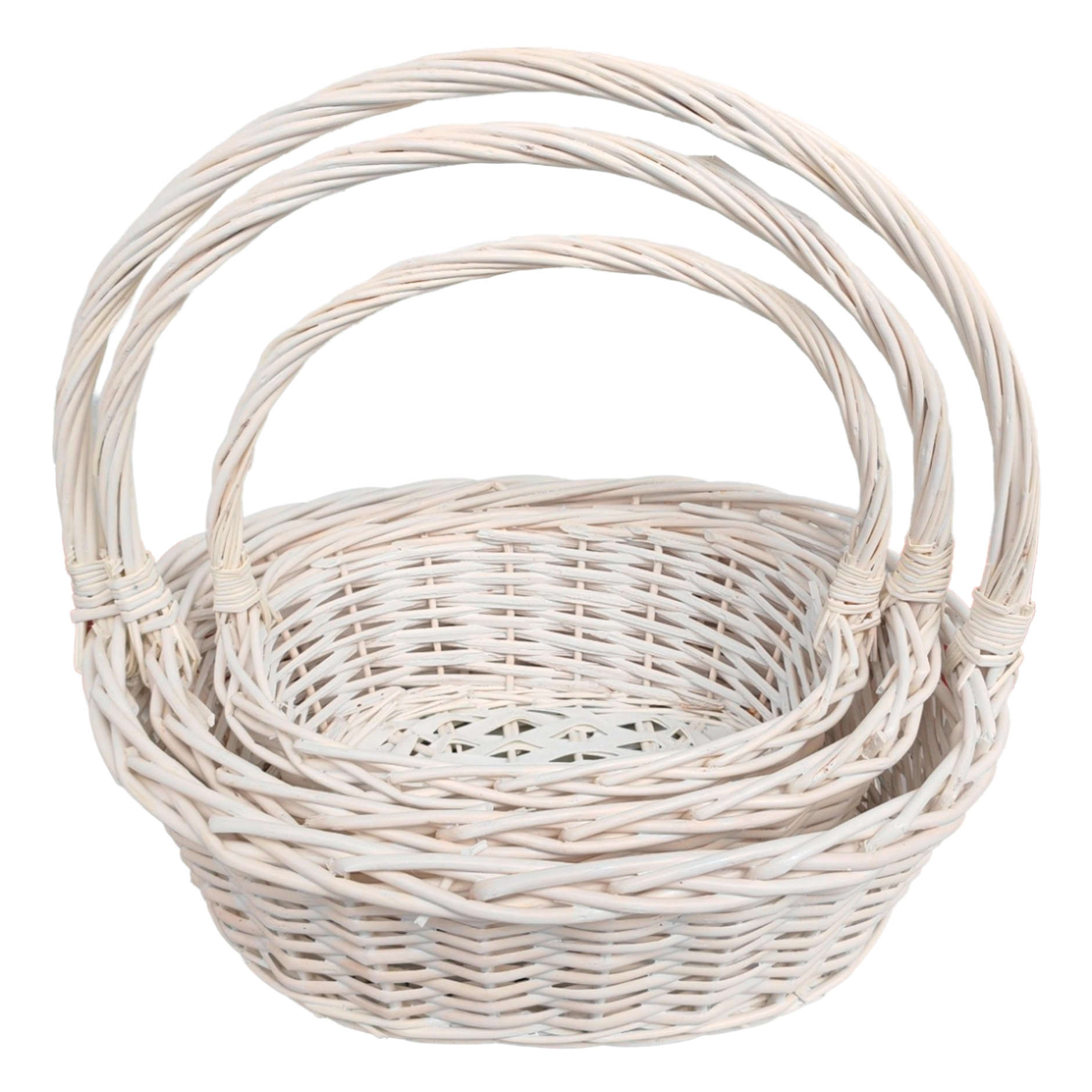 Корзина плетеная (ива), D34xH13/35 см - D24xH9/25 см, набор (3 шт) Белый