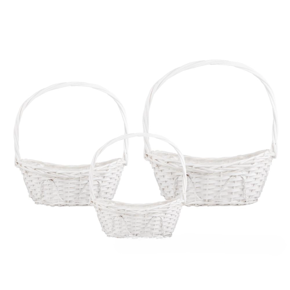 Корзина плетеная (ива), 42x28xH13/55 см - 30x18xH11/44 см, набор (3 шт) Белый
