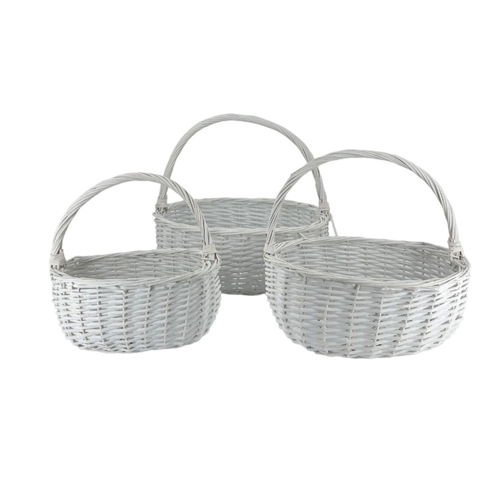 Корзина плетеная (ива), 43x32xH18/40 см - 31x20xH15/30 см, набор (3 шт) Белый
