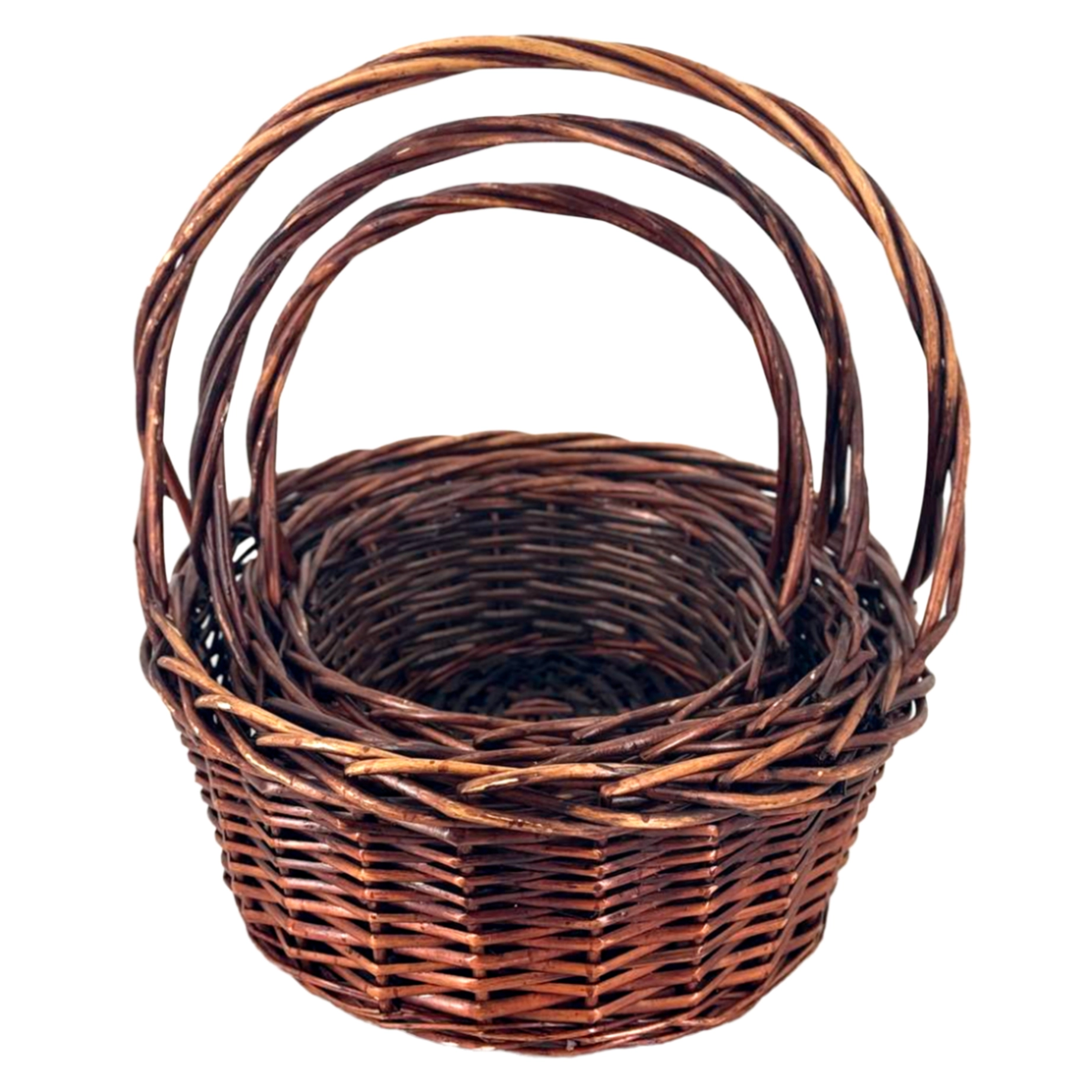 Корзина плетеная (ива), 44х36хH15/39 см, 38х30хH13/34 см, 32х24хH11/29 см, набор (3 шт) Коричневый