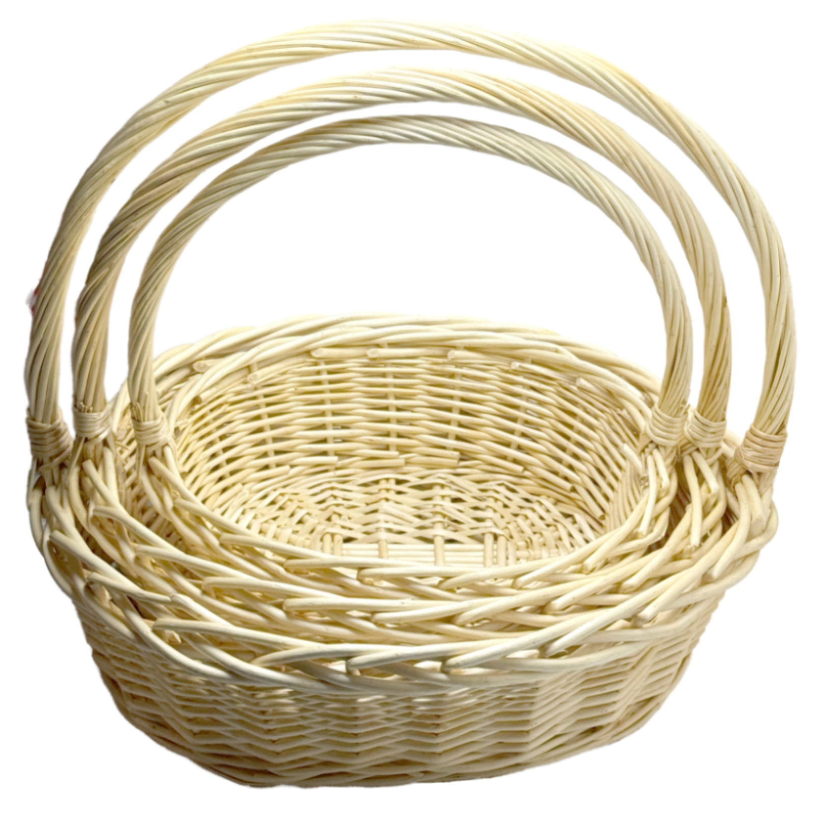 Корзина плетеная (ива), D34xH13/35 см - D24xH9/25 см, набор (3 шт) Натуральный