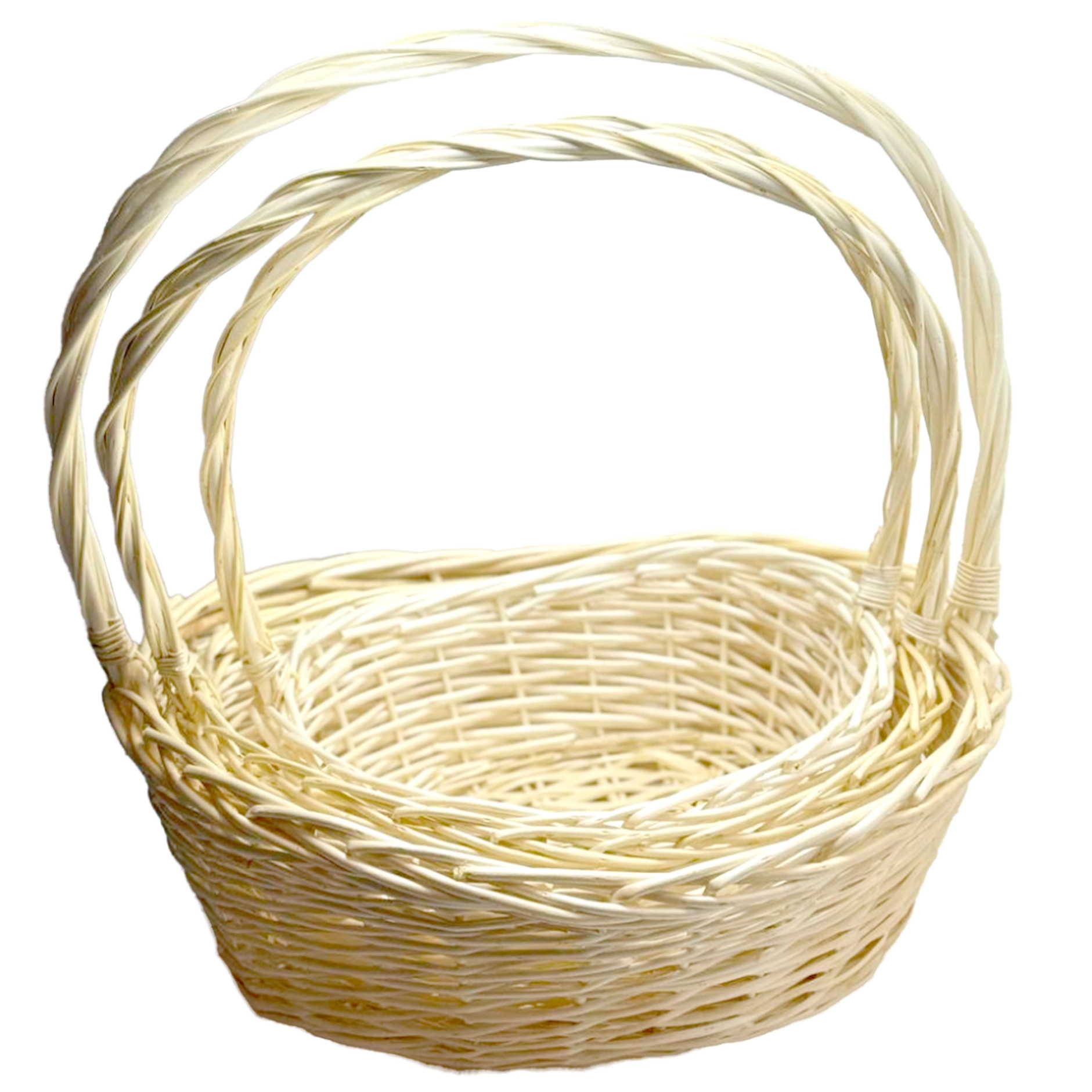Корзина плетеная (ива), D42xH16/42 см - D30xH12/31 см, набор (3 шт) Белый