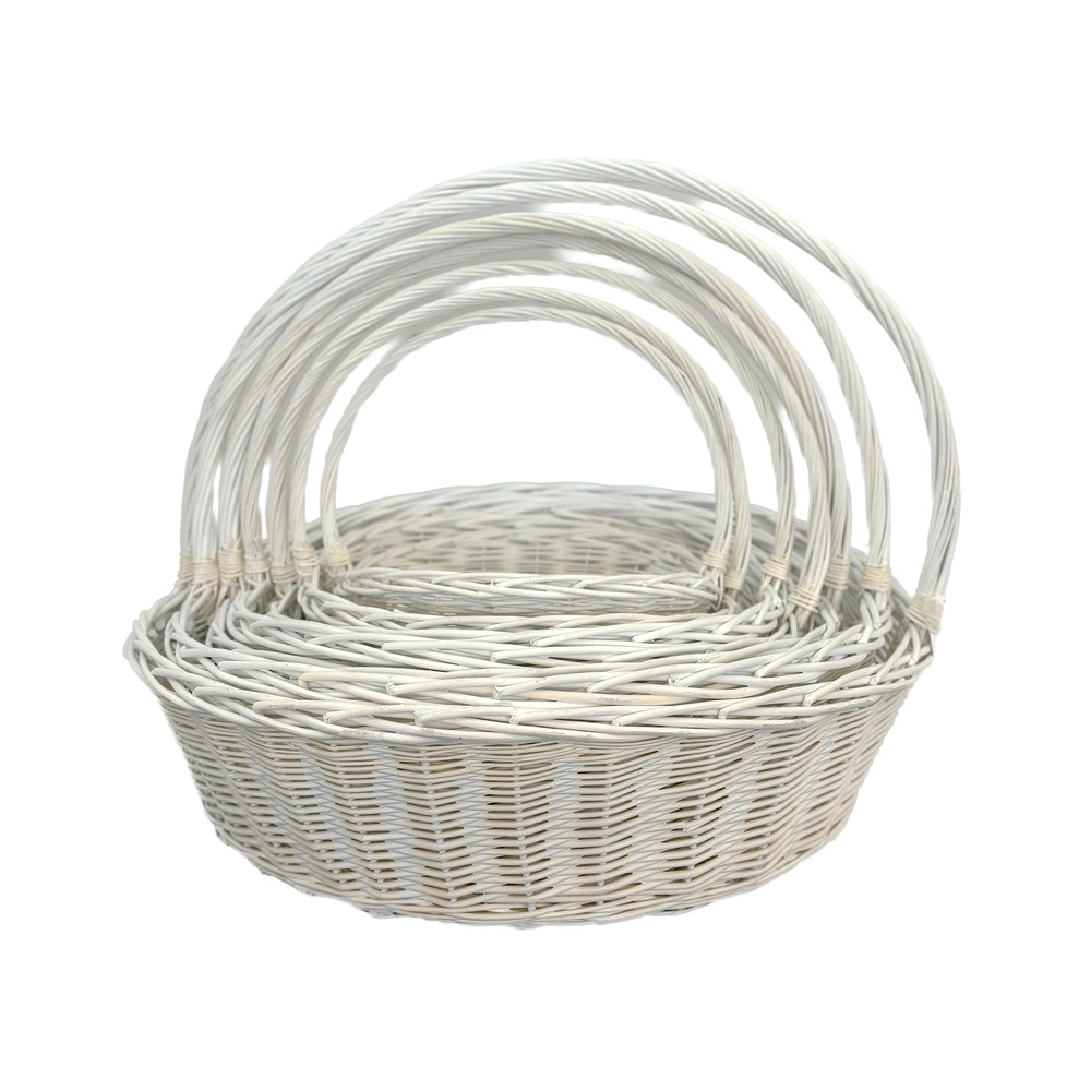 Корзина плетеная (ива), D34xH12/36 см - D21xH8/27 см, набор (3 шт) Белый
