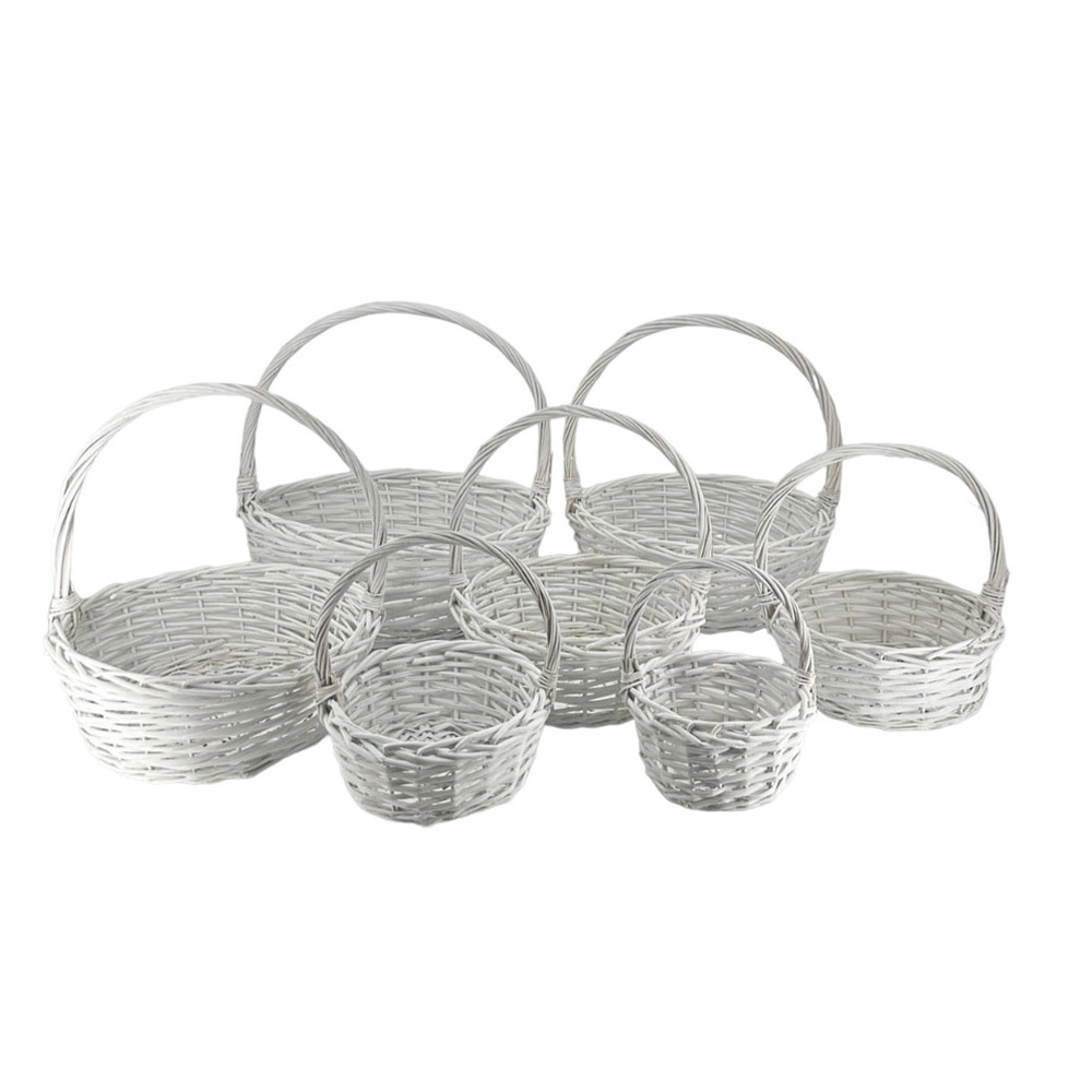 Корзина плетеная (ива), D15хH10/23 см - D46хH15/48 см, набор (7 шт) Белый