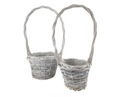 Корзина плетеная (ива), D18xH12/40 см, D14xH11/35 см, набор (2 шт) Белый-серый