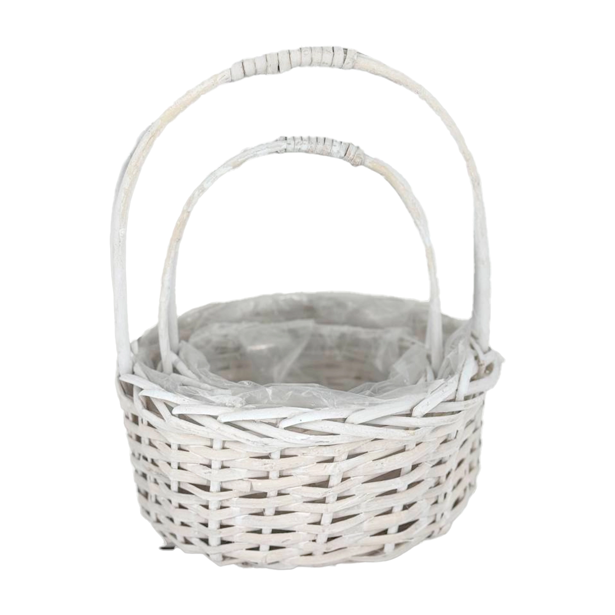 Корзина плетеная (ива), D23xH13/30 см, D18xH10/23 см, набор (2 шт) Светло-серый