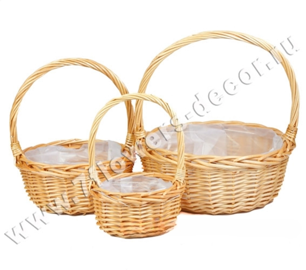 Корзина плетеная (ива), D24xH11/25 см - D12xH7/16 см, набор (3 шт) Натуральный