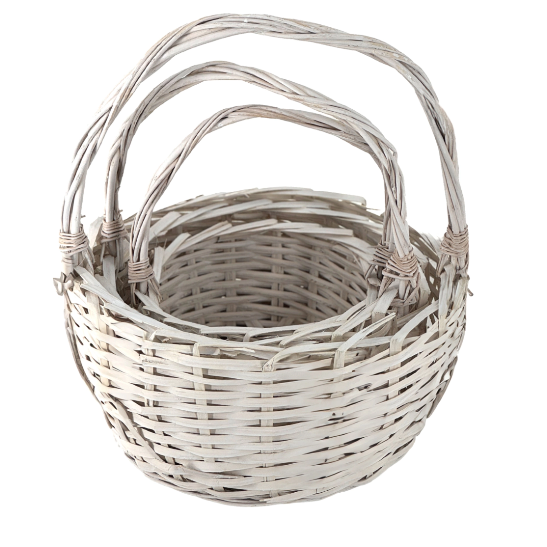 Корзина плетеная (ива), D25xH14/30 см - D38xH19/42 см, набор (3 шт) Светло-серый
