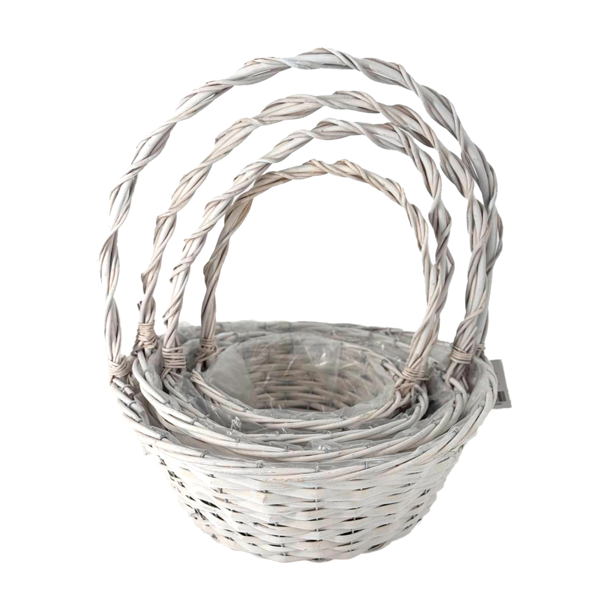 Корзина плетеная (ива), D26xH12/34 см - D45xH18/49 см, набор (4 шт) Белый