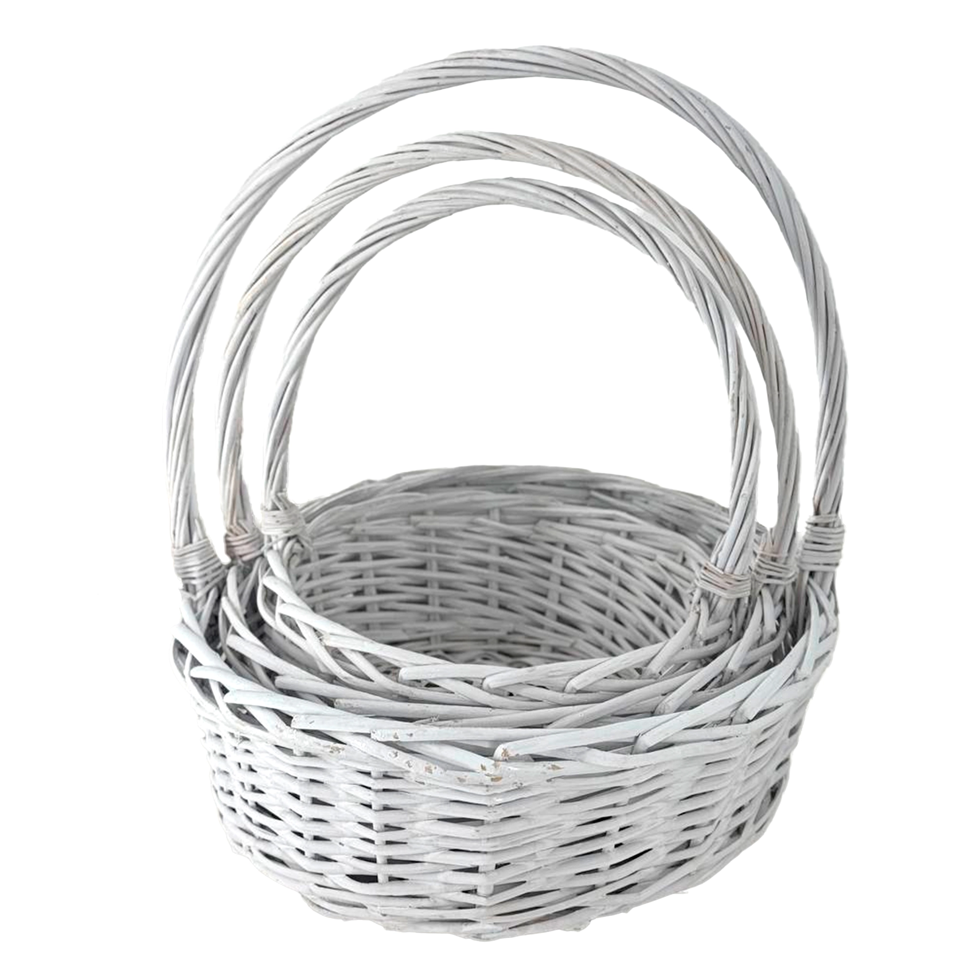 Корзина плетеная (ива), D27xH12/32 см - D3xH14/45 см, набор (3 шт) Белый