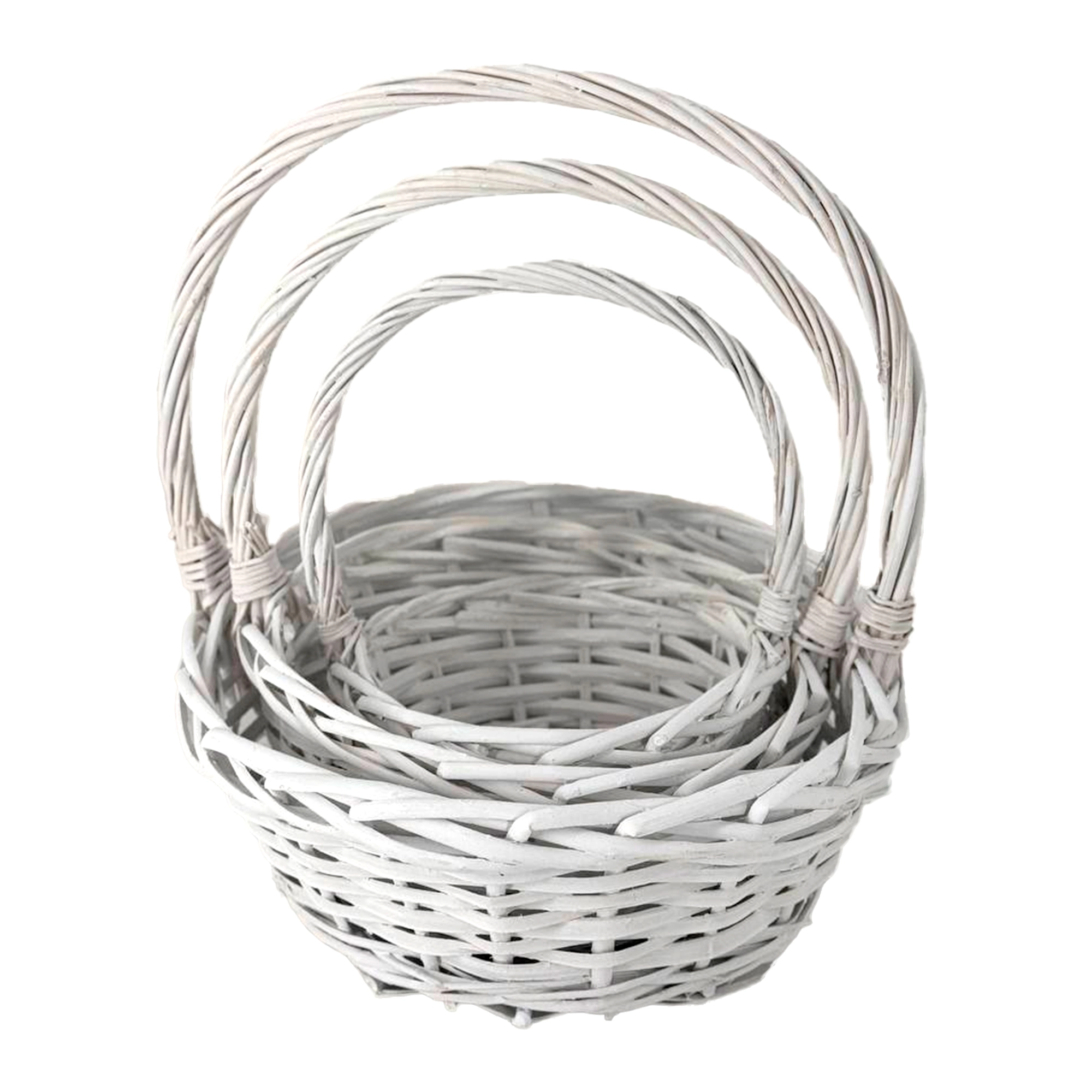 Корзина плетеная (ива), D28xH12/32 см - D18xH8/22 см, набор (3 шт) Белый