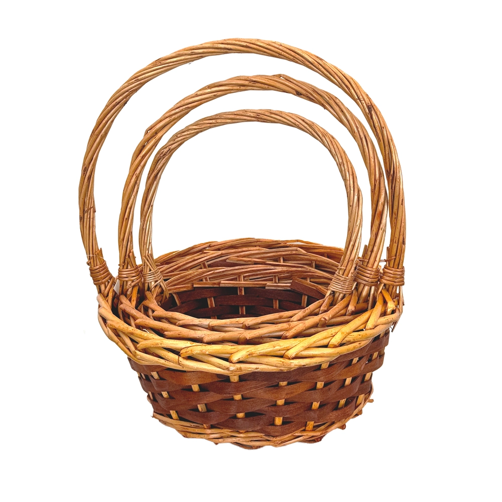 Корзина плетеная (ива), D28xH12/32 см - D18xH8/22 см, набор (3 шт) Натуральный