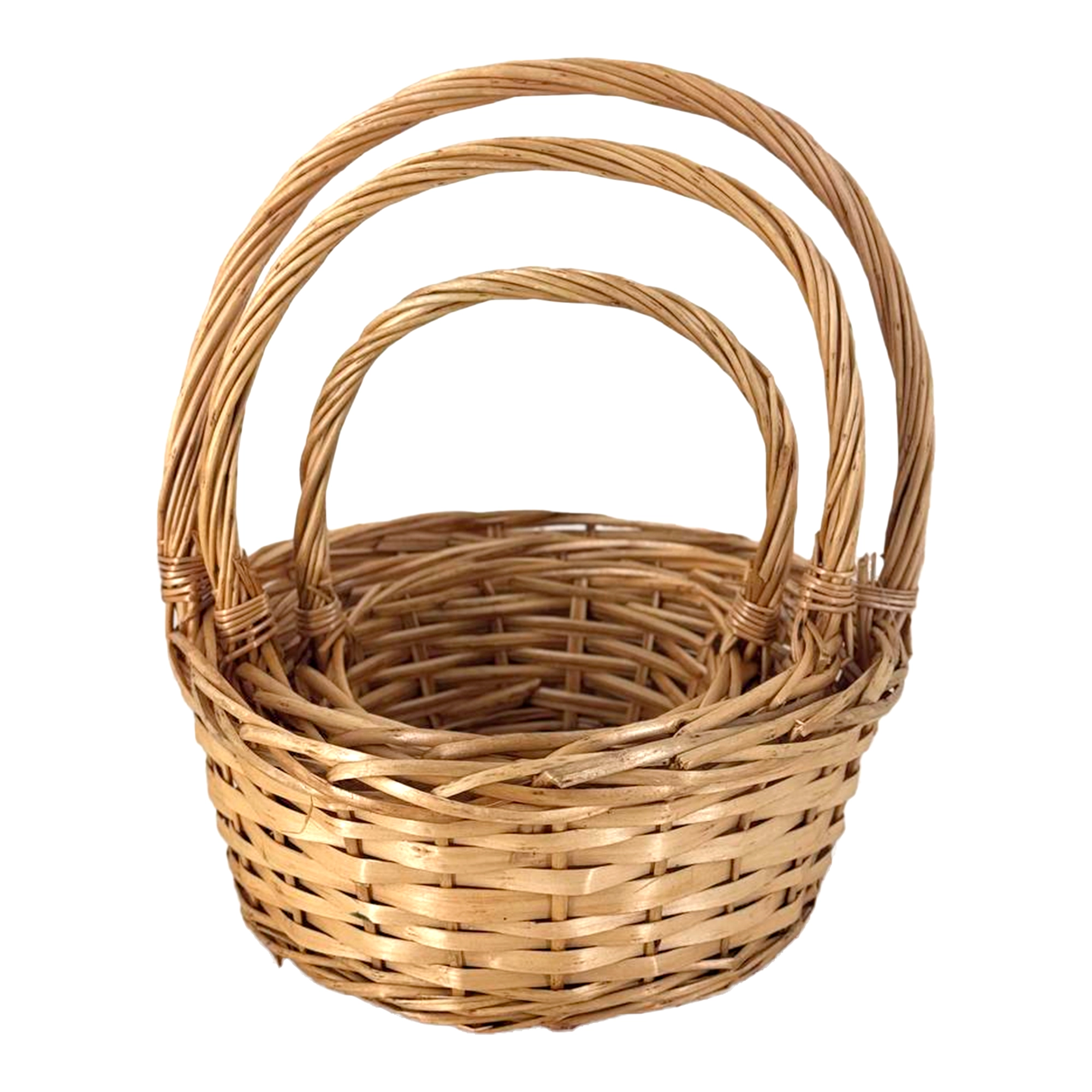 Корзина плетеная (ива), D28xH12/32 см - D18xH8/22 см, набор (3 шт) Натуральный