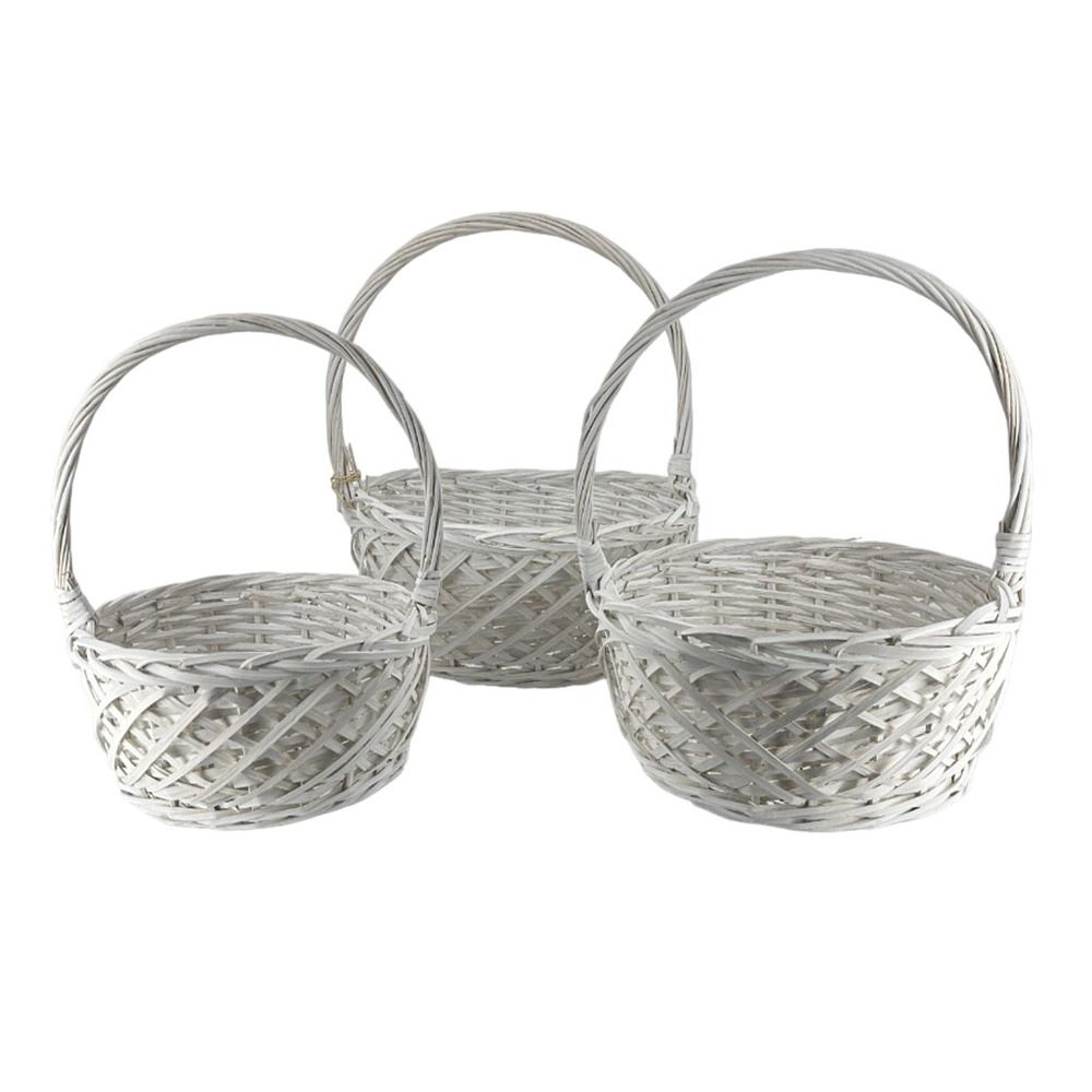 Корзина плетеная (ива), D25xH12/33 см - D37xH16/44 см, набор (3 шт) Белый