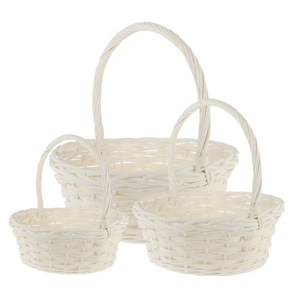 Корзина плетеная (ива), D30xH12/30 см - D44xH16/43 см, набор (3 шт) Белый