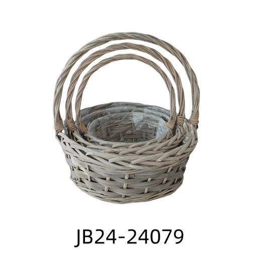 Корзина плетеная (ива), D32xH14/37 см - D21xH11/28 см, набор (3 шт) Серый