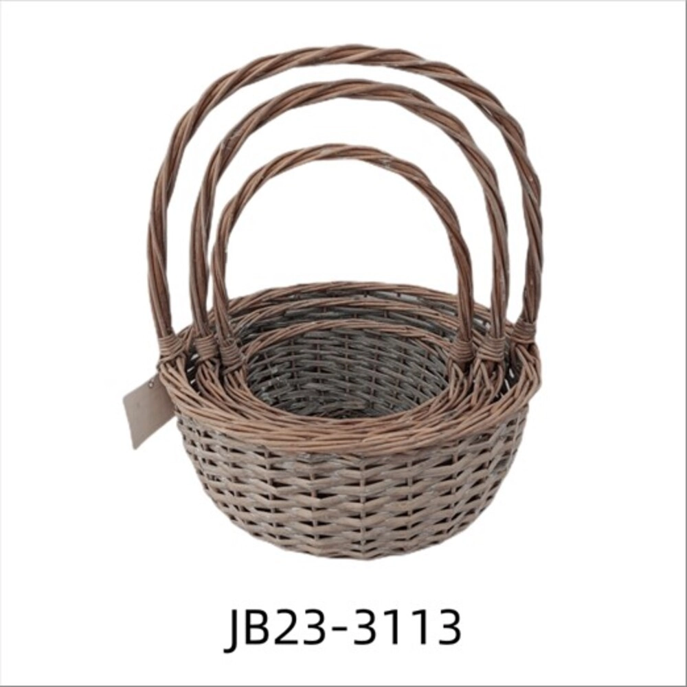 Корзина плетеная (ива), D32xH15/37 см - D21xH10/27 см, набор (3 шт) Серый