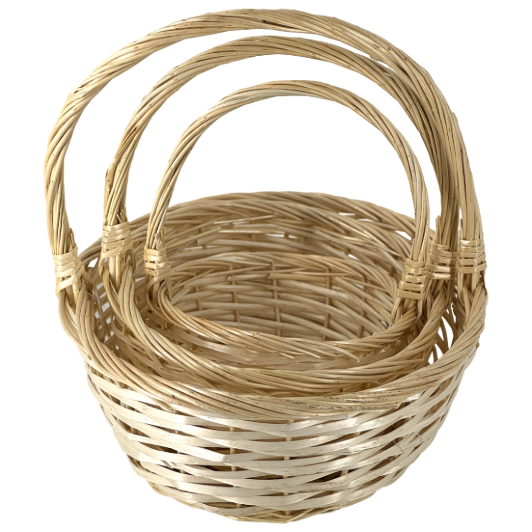 Корзина плетеная (ива), D33xH16/38 см - D22xH12/28 см, набор (3 шт) Натуральный