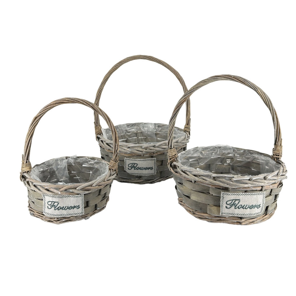 Корзина плетеная (ива), D35xH14/42 см - D22xH10/31 см, набор (3 шт) Серый