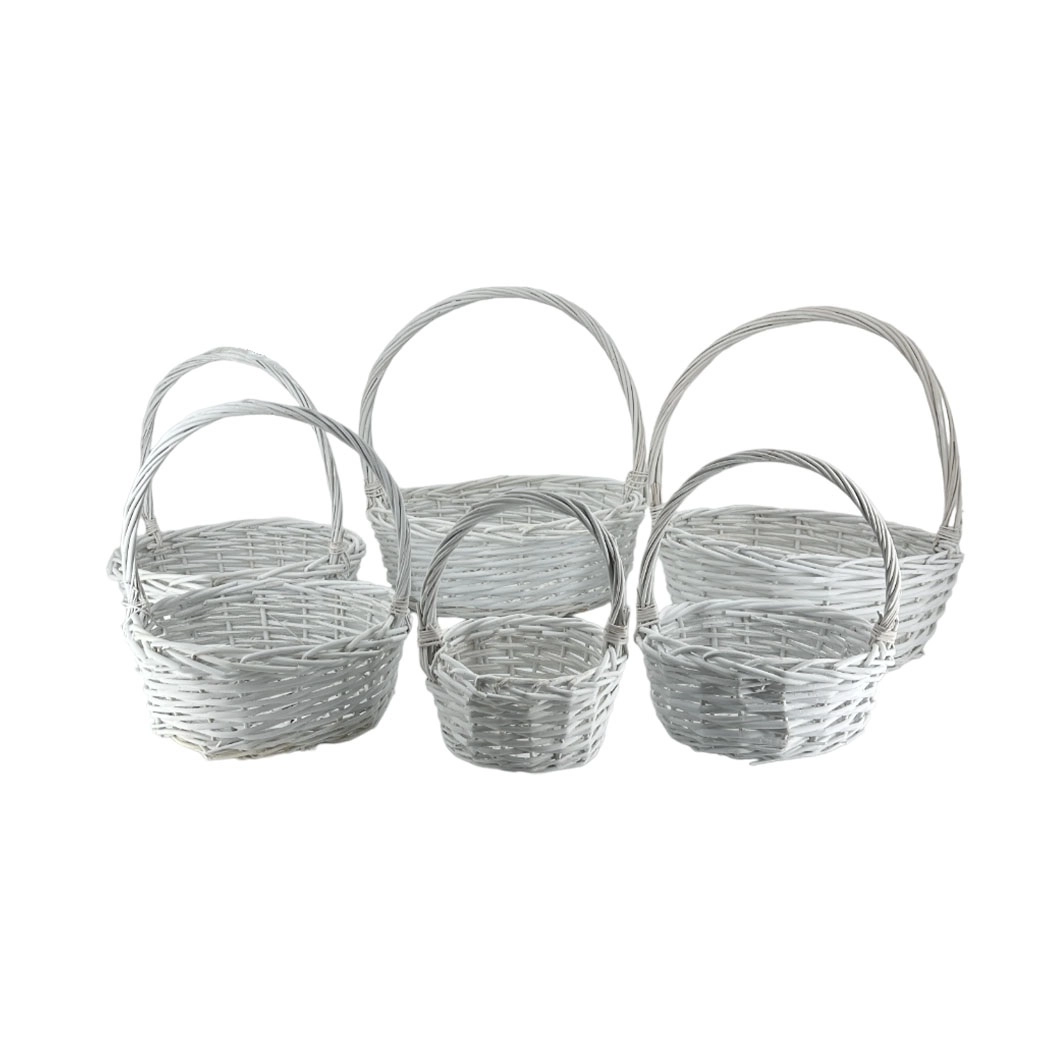 Корзина плетеная (ива), D40xH14/42 см - D15xH10/23 см, набор (6 шт) Белый