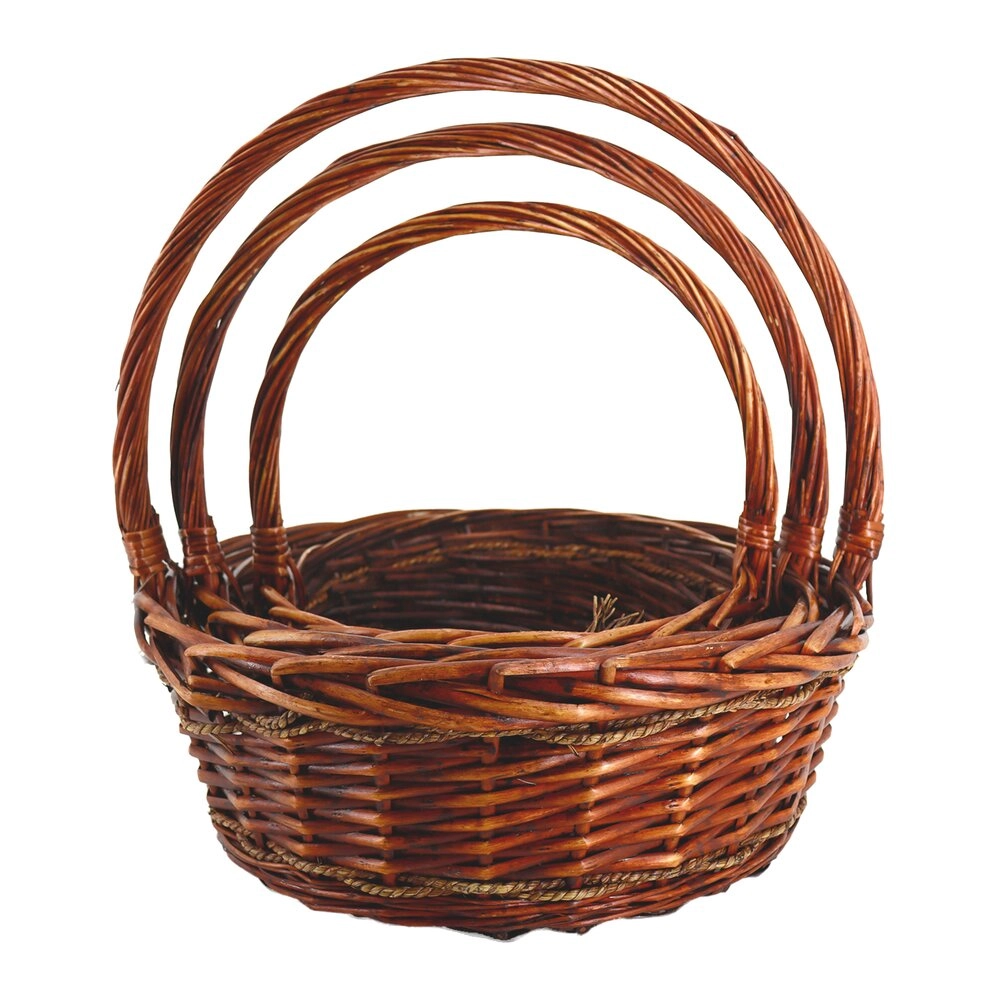 Корзина плетеная (ива), D40xH15/40 см - D29xH12/31 см, набор (3 шт) Коричневый