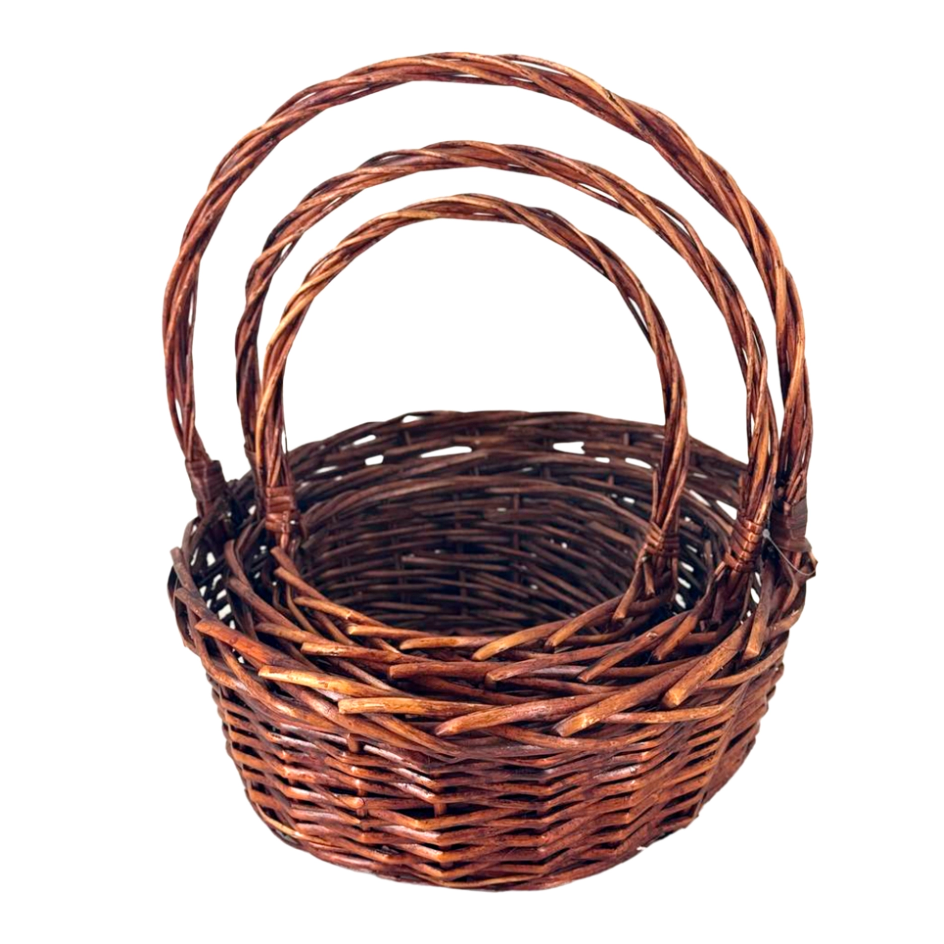 Корзина плетеная (ива), D40xH38 см - D32xH25 см, набор (3 шт) Коричневый