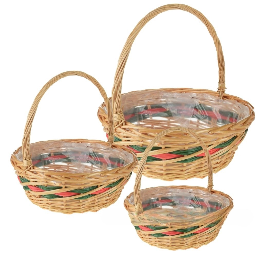 Корзина плетеная (ива), D42xH15/39 см - D29xH12/29 см, набор (3 шт) Натуральный