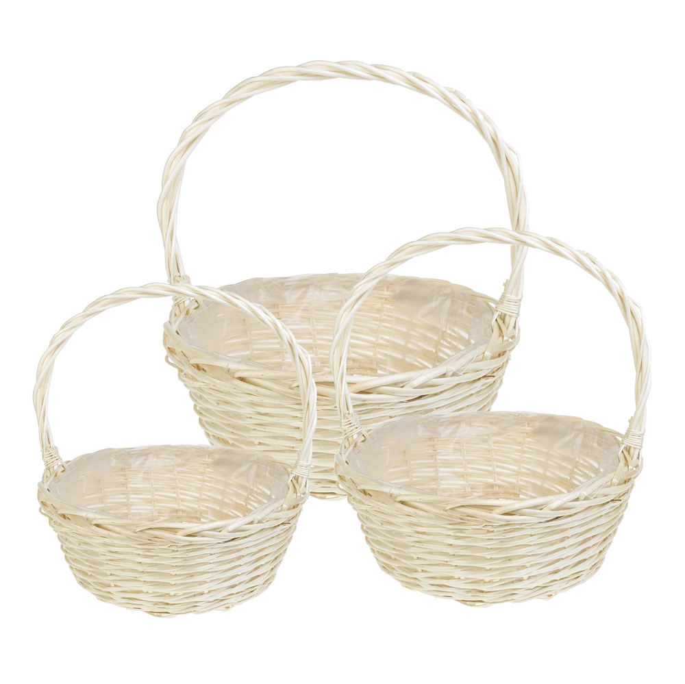 Корзина плетеная (ива), D42xH16/42 см - D30xH12/31 см, набор (3 шт) Натуральный