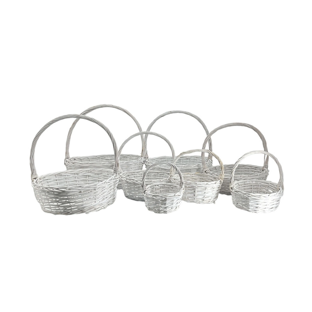 Корзина плетеная (ива), D53xH18/55 см - D15xH10/23 см, набор (8 шт) Белый
