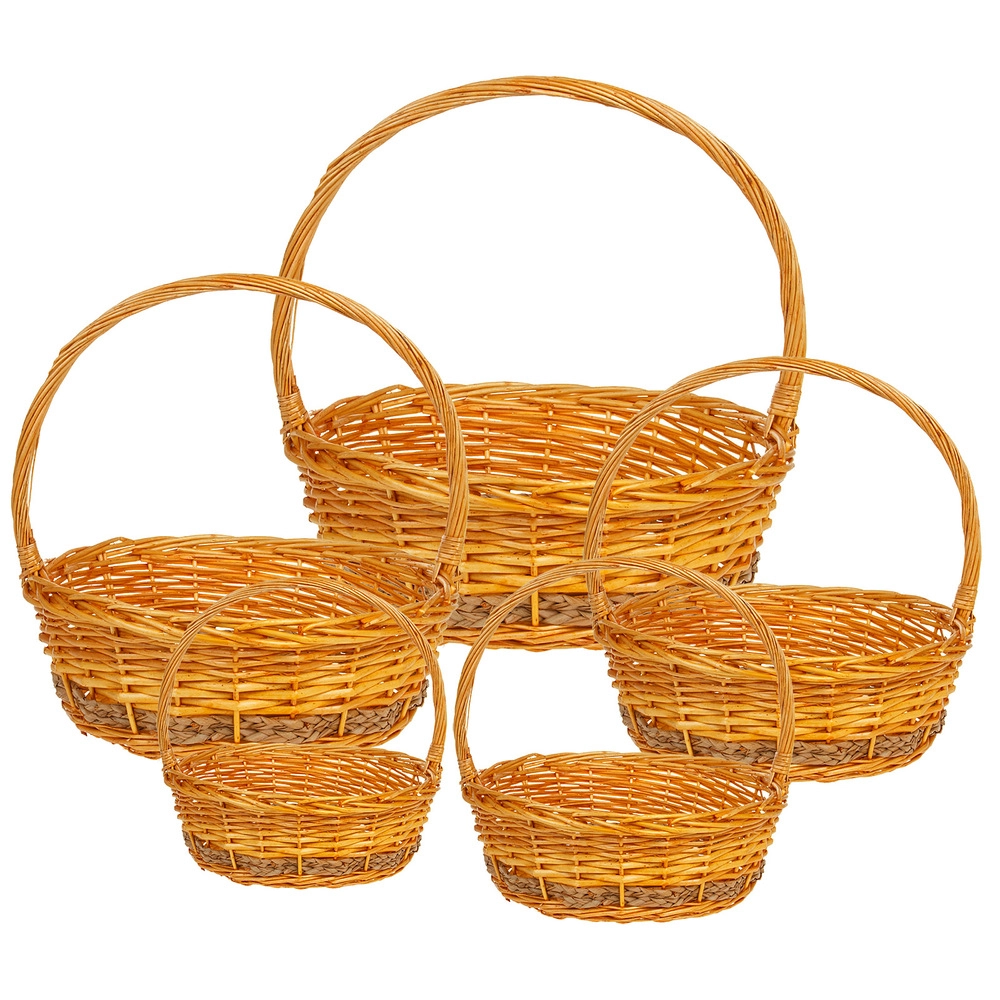 Корзина плетеная (ива), D54xH19/53 см - D28xH11/30 см, набор (5 шт) Натуральный