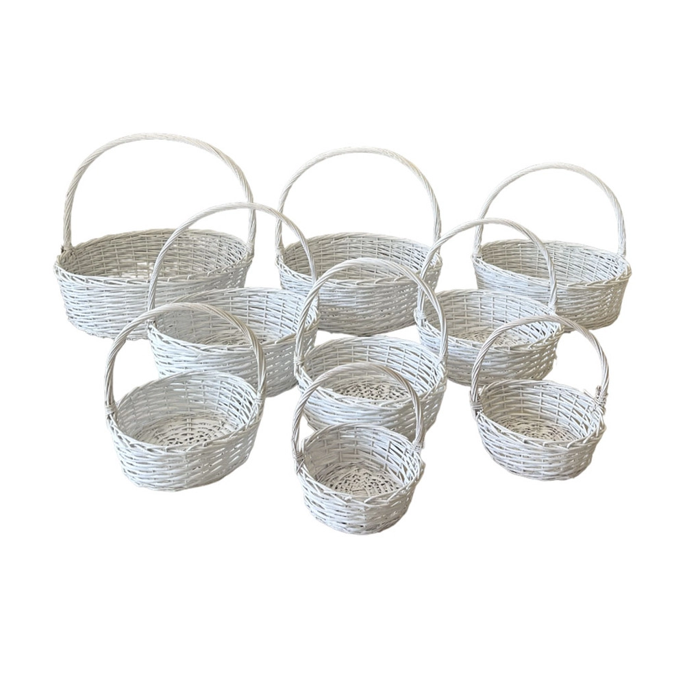 Корзина плетеная (ива), D60xH20/62 см - D15xH10/23 см, набор (9 шт) Белый
