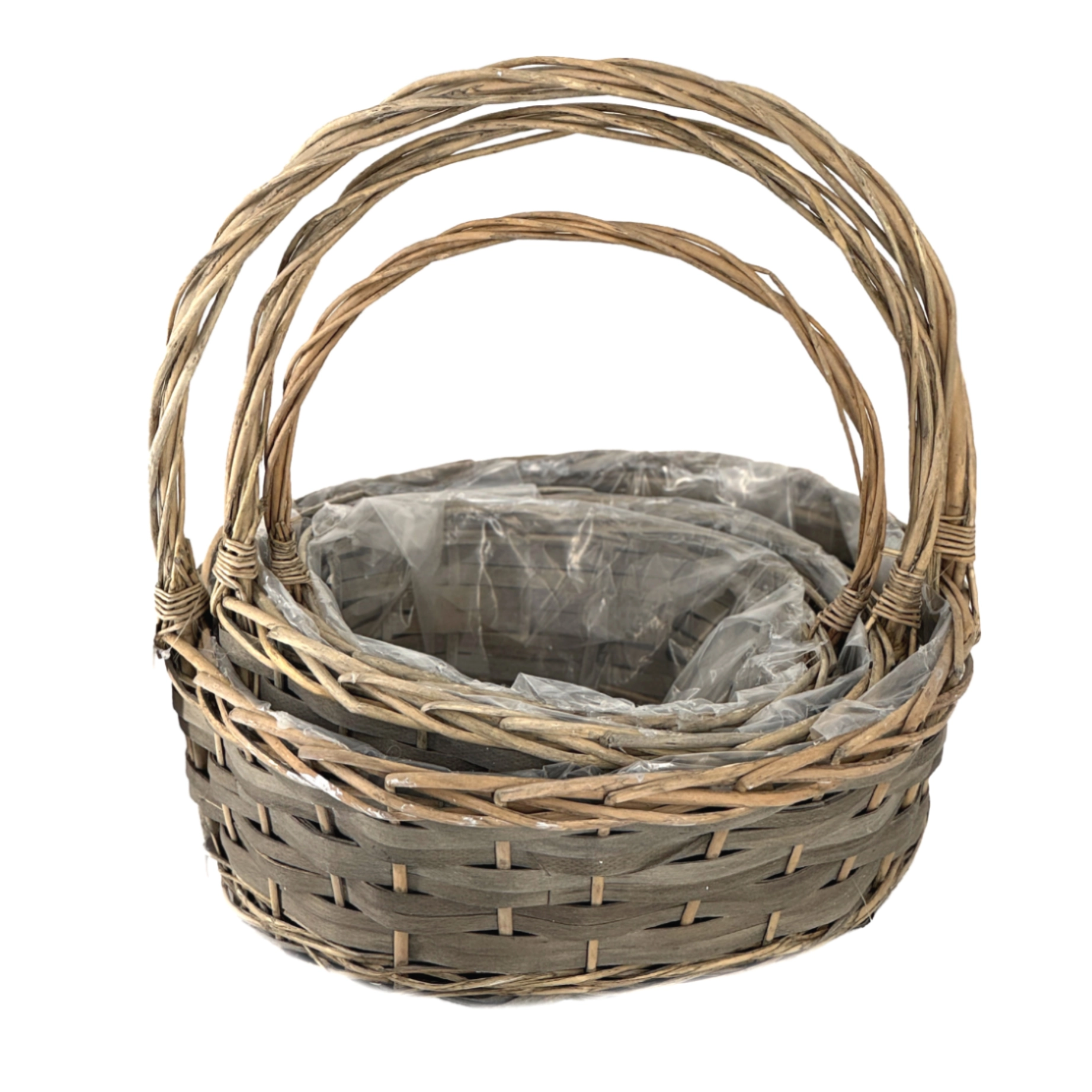 Корзина плетеная "Кант" (ива), 35x32xH14/38 см - 25x20xH11/30 см, набор (3 шт) Серый