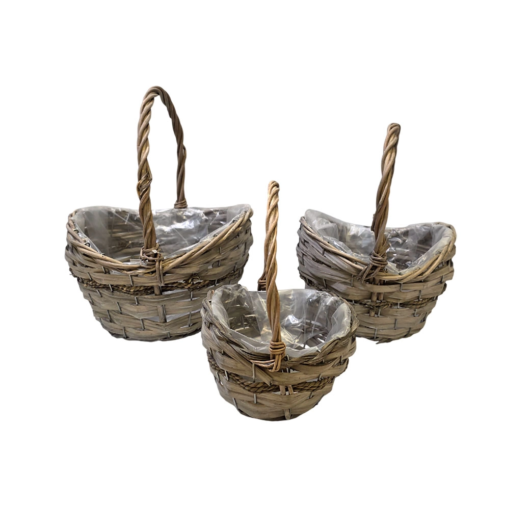 Корзина плетеная "Кант" (ива), D25xH18/33 см - D17xH13/24 см, набор (3 шт) Светло-серый