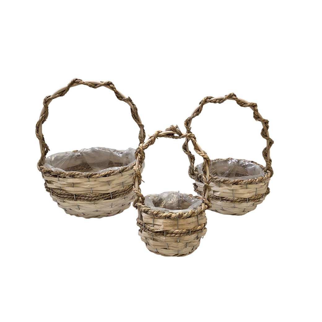 Корзина плетеная (водоросли, ива), D26xH15/34 см - D15xH11/25 см, набор (3 шт) Коричневый-кремовый