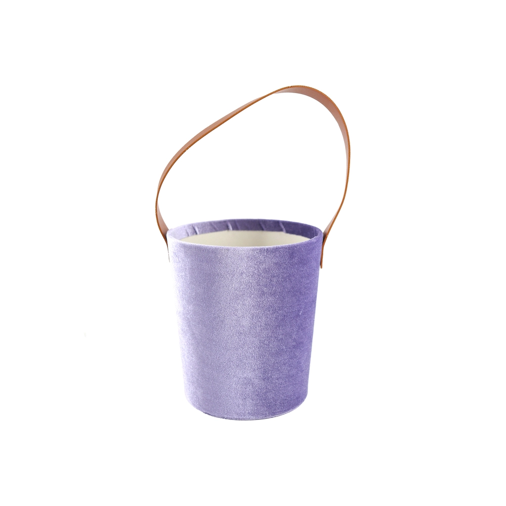 Коробка-кашпо (бархат), D14хH15 см, с ручкой Фиолетовый
