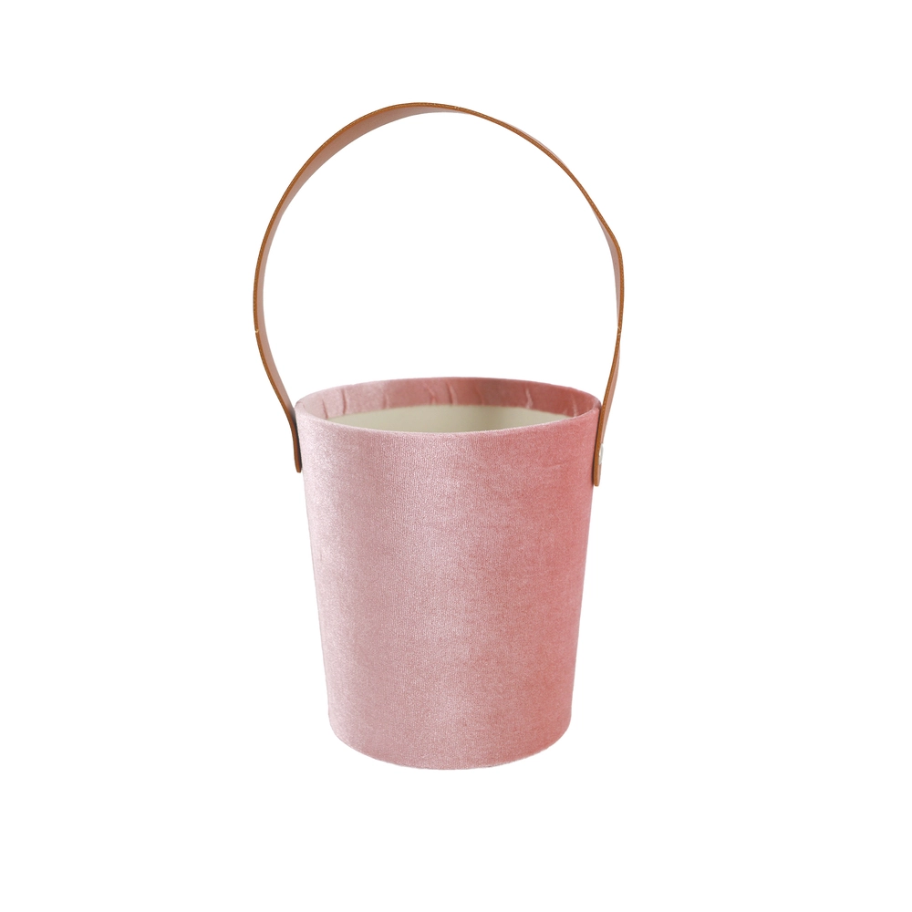 Коробка-кашпо (бархат), D14хH15 см, с ручкой Светло-розовый
