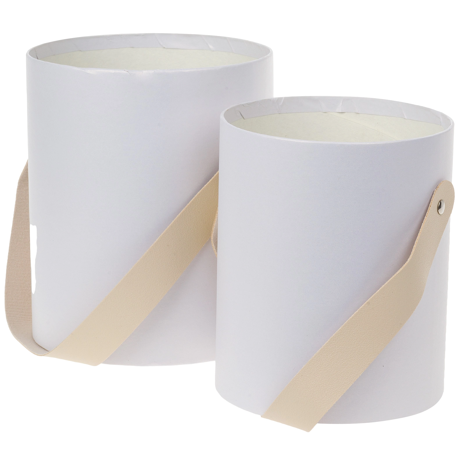 Коробка-кашпо, D14xH17,5 см, D12xH15,5 см, набор (2 шт), без крышки, с ручкой Белый