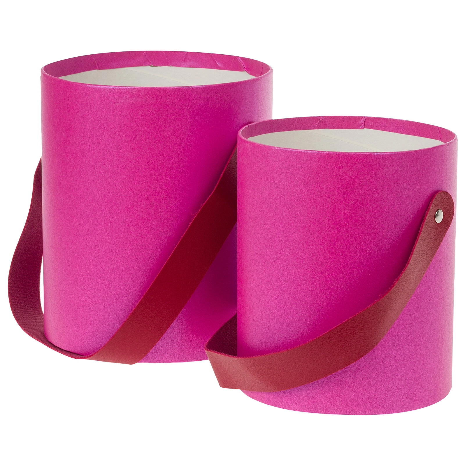 Коробка-кашпо, D14xH17,5 см, D12xH15,5 см, набор (2 шт), без крышки, с ручкой Фуксия